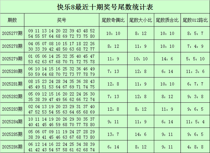 【61-80】区间分析:上期该区较冷开出4个奖号,其余数为:1284,最近5期该区余数0-9一齐开出了,其中余数1569较冷,出现1次,余数8较热,出现5次,最近10期余数6最冷,出现1次,余数8最热,开出11次,其中余数012路比为18:16:23、质合比为28:29、奇偶比为24:33、大小比为31:26,本期看好该区段余数034579出号,参考号码64、65、69、73、77、80。