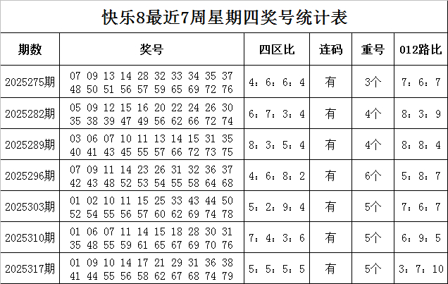 四区比分析:最近7周星期四奖号四分离别开出39个,33个,39个和29个奖号,其中第一、三区落号较多,第四区落号较少,最近3周星期四奖号四分离别出现17个、11个、17个和15个奖号,,上周星期四奖号四区出号个数分别为5个、5个、5个和5个奖号,本周星期四预测第四区推崇活跃,第二区推崇低迷,推选四区比5:4:5:6。